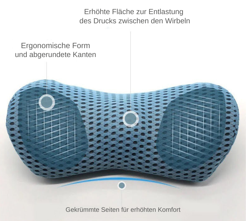 Mit dem NeoCushion wird der Lendenbereich des Rückens angehoben und ermöglicht Ihnen so eine korrekte Haltung beim Sitzen und Schlafen. Das Kissen besteht aus einem speziellen Memory-Schaumstoff, der sich der Form Ihrer Wirbelsäule anpasst. Dadurch wird die Belastung der Wirbel und der umgebenden Muskulatur reduziert und der Druck zwischen den Wirbeln abgebaut.